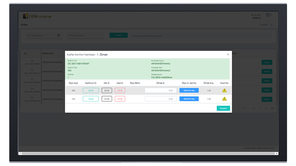 Mamulde doğru hammadde ve yarımamuller'in kullanılmasını zorlamaktadır. Üretim parameterlerinden hatalı üretime kadar üretime dair tüm süreçler operations ekranından yürütülmektedir.